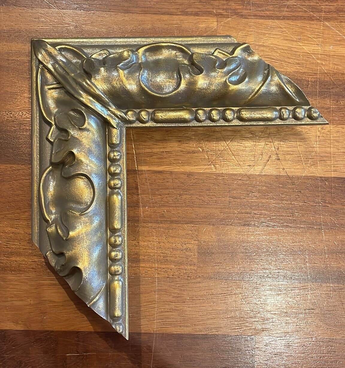 Sometimes with highly moulded frames, the pattern doesn’t line up well at the corners – you see the join. We hand sculpt designs to decoratively cover this blemish in ornate frames. This is then painted along with the rest of the frame to conceal the mitres and make a perfect finish.